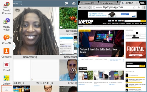 Samsung'south Multi Window style is one of the best features of the Samsung Galaxy phone and tablet lines. The dual-screen mode lets users open up 2 adjacent windows, assuasive for seamless multitasking. Samsung has refreshed Multi Window mode, adding several helpful new features in time for the Galaxy Annotation 3 and Note 10.one - 2014 Edition launch. Now users tin can run the same app simultaneously in both windows, drag and drop content from one window to the other, and quickly navigate contempo apps when in Multi Window fashion. Here's a quick walk through of each of the new features and how to utilize them. — Sherri Smith