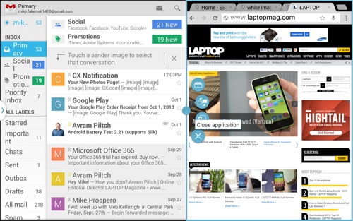 One of the Samsung'due south biggest improvements to Multi Window way is the ability to run the same app in both windows. However this feature only works with electronic mail, ChatOn, the web browser, My Files, Hangouts and YouTube. From there, you can queue up any app by selecting in the Multi Window mode.