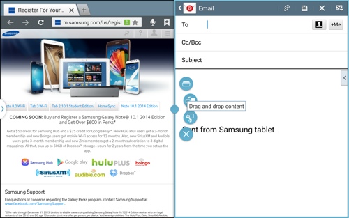 2. Select the content using the South Pen or your finger and drag it into the email.